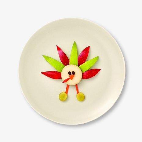 Start med å legge to Mini Babybel® Original-oster cirka fire centimeter fra hverandre på en tallerken. Plasser et tørket blåbær som øye på hver ost, og lag deretter finner og hale ved hjelp av mandarinbåter. Skjær til de tørkede mangobitene, og plasser dem som hodefinner. Fiskenes lepper lager du ved hjelp av bitte små biter av rødt eple, som du legger ut fra osten. Lag luftbobler ved å plassere ferske blåbær over ostefiskene, og avslutt mesterverket ved å kutte de grønne bønnene på langs og plassere dem nederst på tallerkenen, som tang. (Vær alltid forsiktig når du bruker kniv.)
